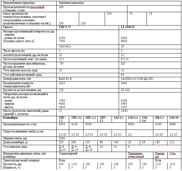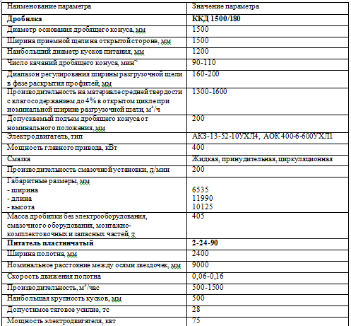 Техническая характеристика основного оборудования участка дробления
