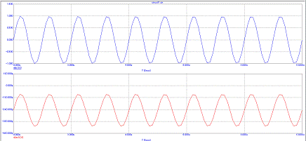 "Запустить" отримаємо осцилограми досліджуваного підсилювача (рис.