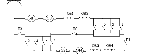 чотирма тяговими двигунами типу ДК117А з послідовним збудженням. Потяг