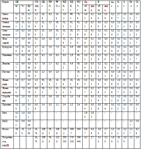 Заключение по составленному рациону: содержание питательных веществ в кг