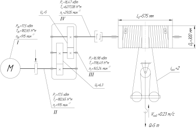 - витки каната на барабане, находящиеся под зажимным устройством, принимаем zкр = 2;