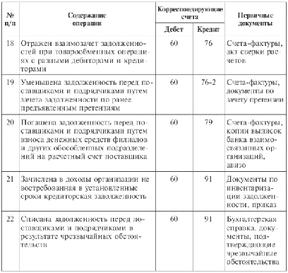 поставщиками и подрядчиками» в корреспонденции со счетами учета