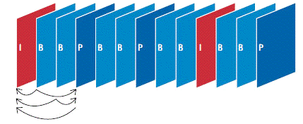 P-кадров. P-кадр может ссылаться только на предшествующие I- или P-кадры, тогда