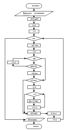 k=k+1, якщо j≤n, перехід: записуємо rp+1=rp, думаємо p=p-1: якщо p≥j