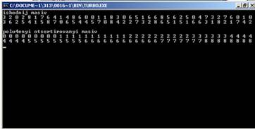 якій виводяться відсортований масиви.