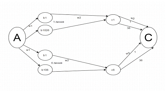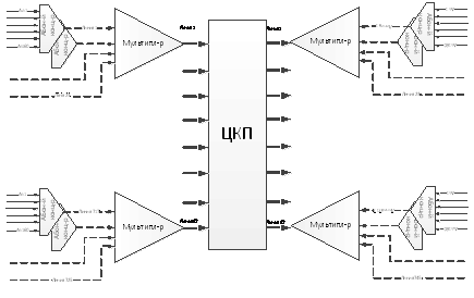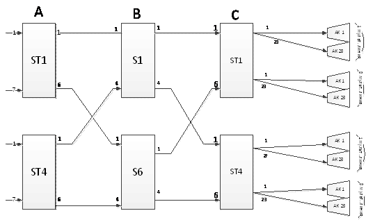 Полученное ЦКП состоит из трех звеньев. В звене А и С - по 6 ST-коммутационных