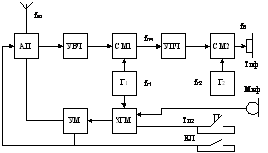 модулятор; УМ - усилитель мощности; АП - антенный переключатель; Тлф, Мкф, Тлг
