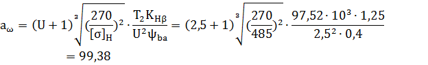 При расчете цилиндрической передачи получены следующие данные межосевое