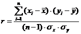 Srx, y, Sry)/((n-1)*Somx*Somy);//Вычисление коэффициента парной