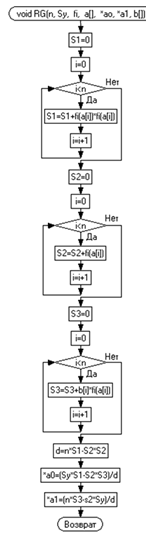 {(n, Sy, fi1, x, &a0, &a1, y);//Вычисление коэффициентов a0 и a1