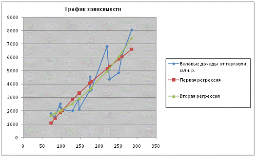исходными данными и регрессионными зависимостями