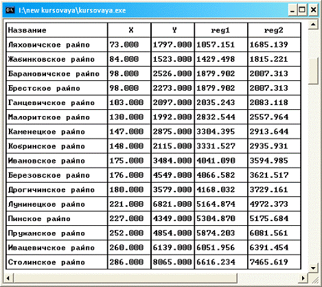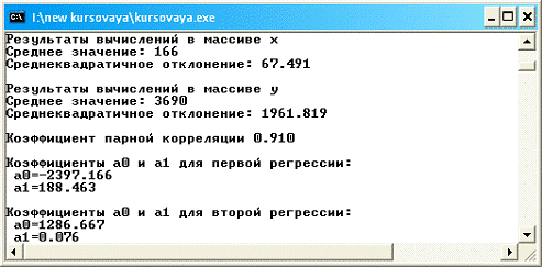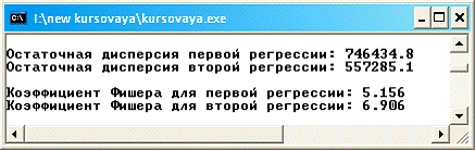 регрессии: %.3f\n\n"), Fish1, Fish2);//Вывод коэффициентов Фишера(Fish1>Fish2)//Если