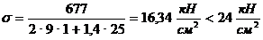 Напряжение в сечении 1-1 (2В = 25
