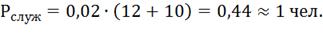 Количество младшего обслуживающего персонала принимаем 1% от численности