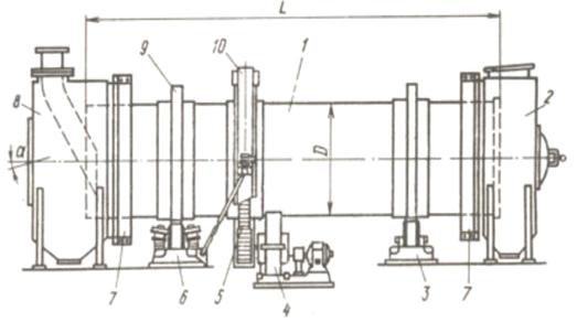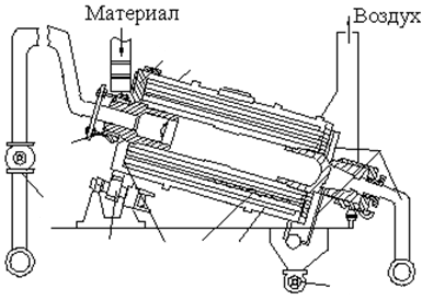 установки, чертеж общего вида (корпус барабанной сушилки), теплообменник