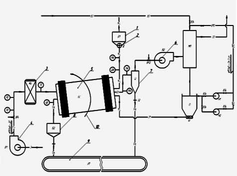 вращающейся сушилке производительностью 4,7 кг/с при действии сушильного
