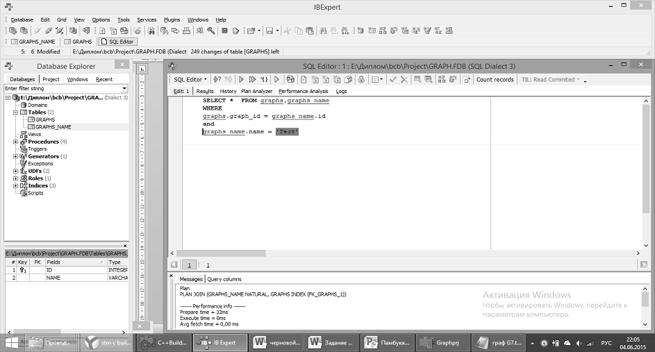базы данных для хранения полученных графов и организация взаимодействия базы