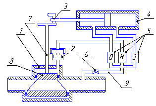 выключатель; 4 - пневмогидропривод; 5 - электропневмоклапаны; 6 - вентиль