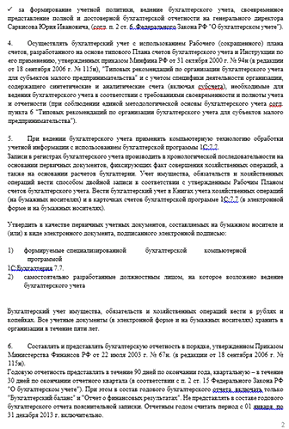 (Приложение 1) Он отвечает за формирование всей учетной политики организации,