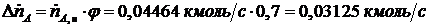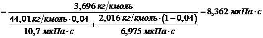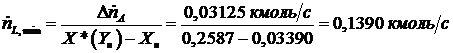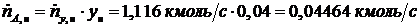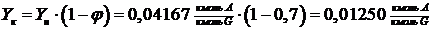 абсорбтива в исходной газовой смеси yн = 4 % об. = 0,04