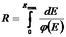 Emax, можна отримати повний пробіг частинки, тобто повний шлях R, який