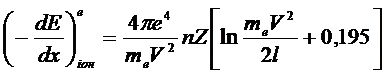 питомих іонізаційних втрат, які являють собою відношення енергії dE