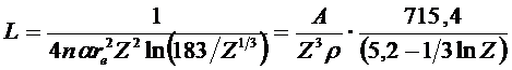 відносна швидкість частинки, Z - зарядове число; А - масове число, ρ -