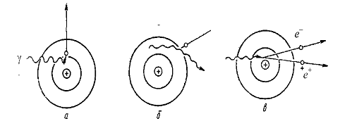 ядра орбіту), а також на іонізацію атомів або молекул середовища (відрив одного
