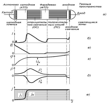 Рис. 3. Структура излучения тлеющего разряда (а)