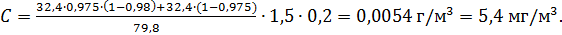 При решении задачи запыленности воздуха рабочей зоны рассчитана