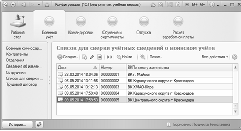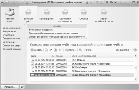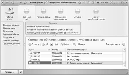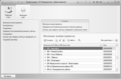 учреждения, структурных подразделениях, военных комиссариатах, контрагентах и