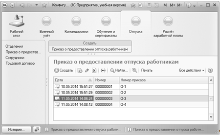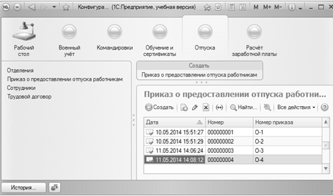 отпусков. В документах конфигурации реализованы мощные средства формирования