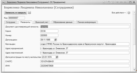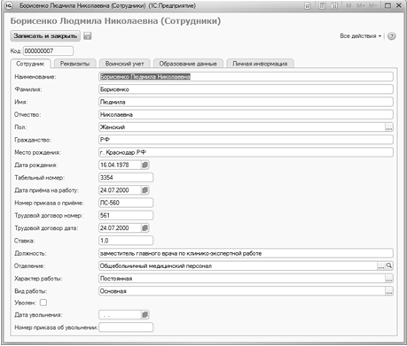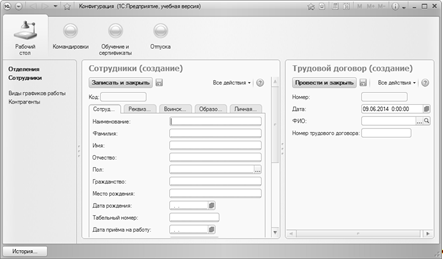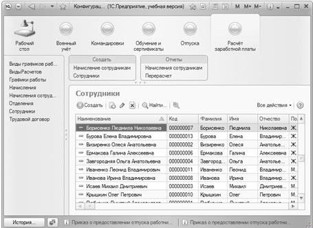 - Справочники (5), которые хранят и отображают информацию о сотрудниках