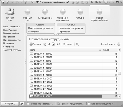 начислении сотрудникам заработной платы, а также оформление служебных заданий и