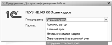 именно: администратор, главный врач, сотрудники отдела кадров, сотрудники