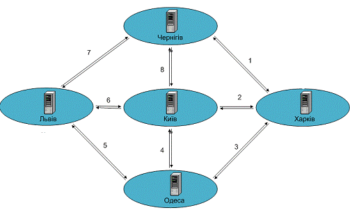 деревоподібну топологію об'єднуюча центральний офіс, що знаходиться у м Києві,