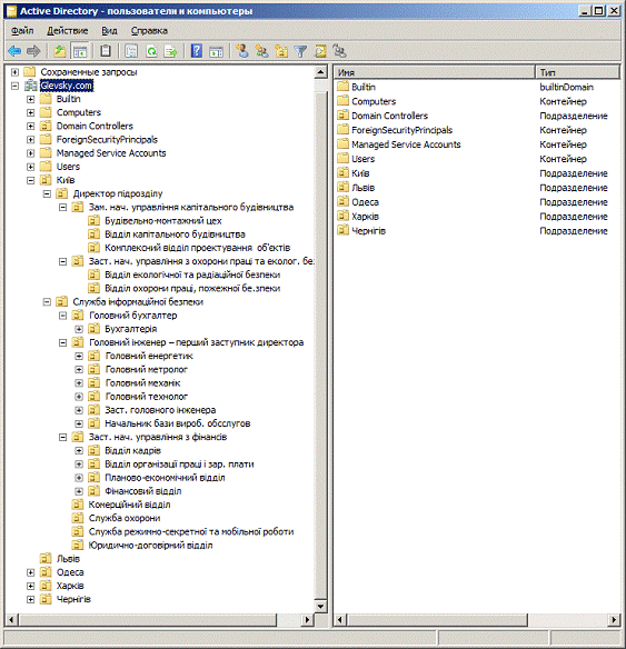 цільових завдань, структурна схема каталогу «ActiveDirectory» повинна надавати