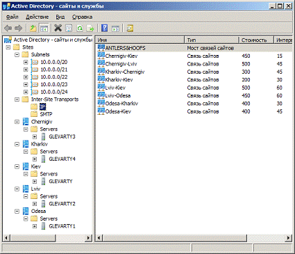 інструменті адміністрування «ActiveDirectory - сайти і служби», клацнувши