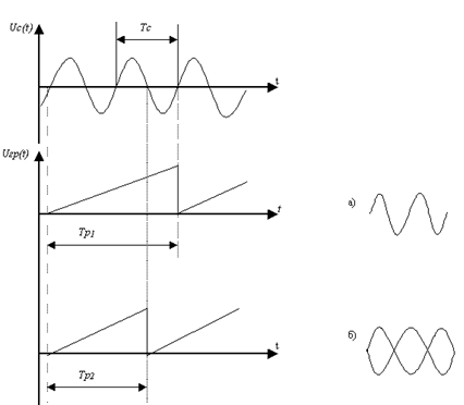сигналов, поясняющие принцип стробоскопического временного преобразования.