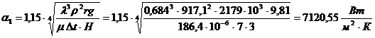 Припускаємо плівкову конденсацію пари, тоді розрахунок коефіцієнта тепловіддачі конденсату проводимо приблизно за формулою [1]: