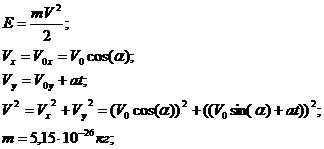 - зависимости кинетической энергии частицы от времени полета в конденсаторе;