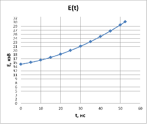 «x»; - зависимость кинетической энергии частицы от времени полета в