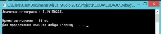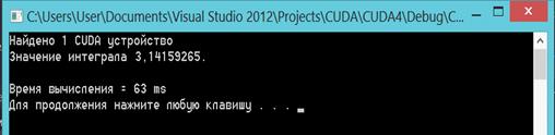 %0.7f\n", sum / numSteps);("\nВремявычисления = %d ms\n",