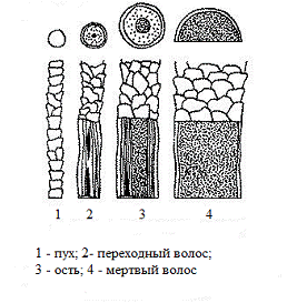 (подшёрстка). У овец покровный волос составляют: ость, переходный и кроющий