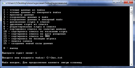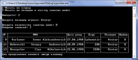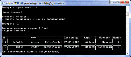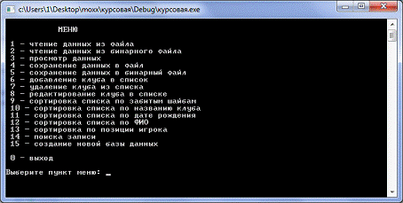 ФИО\n2 - Дата рождения\n3 - Клуб\n4 - Позиция\n5 - Шайбы\n\nВыберите: