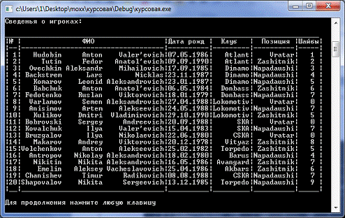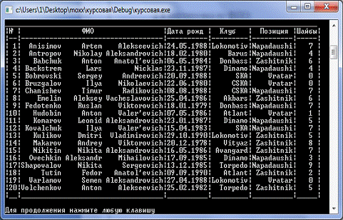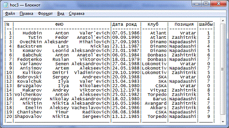 {f; // фиоdr; // дата рожденияclub [L]; // клубpoz [L]; //