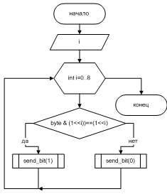 void send_bit(char bit) - функция отправки бита в датчик;