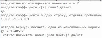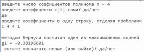 Программная реализация решения алгебраического уравнения методом Бернулли