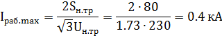 работа двух трансформаторов ТДЦ-80, определяется максимально возможный ток