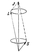 удобно представлять себе как вектор, прецессирующий вокруг оси z. Угол между